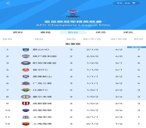 成都蓉城输了,上港也输了,另一争冠球队申花恐怕也悬了,这就是现如今的中超球队踢亚冠。这场胜利,是町田泽维亚的队史亚冠首胜。感谢上港,感谢中超冠军。本场战罢,成都蓉城3战1胜2负积3分暂时排名第8。作为中超卫冕冠军,作为目前中超积分榜领头羊的上港却是3战1平2负积1分排名垫底,这就说不过去了。扛不起亚冠大旗,这样的中超冠军就是拿再多又有何用呢?