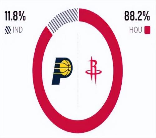 赛前,美媒ESPN对本场比赛进行了胜率预测,步行者胜率仅有11.8%,火箭队胜率则高达88.2%, 差距非常悬殊。